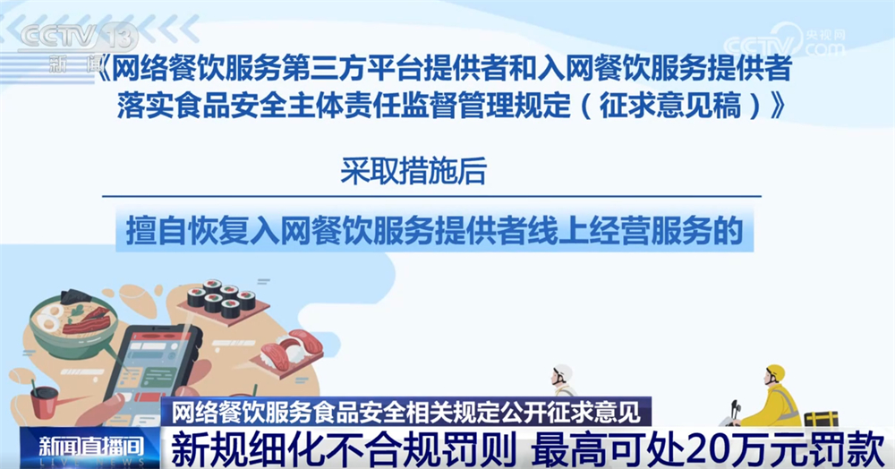 推进监管系统进一步科学化。网店招牌名称该当取实体运营门店招牌名称分歧,防止餐饮食物正在配送过程中遭到污染。将面对五千元以上三万元以下罚款。收罗看法稿明白了平台供给者收集餐饮办事食物平安从体义务,《收集餐饮办事第三方平台供给者和入网餐饮办事供给者落实食物平安从体义务监视办理(收罗看法稿)》面向社会公开收罗看法。要求对入网餐饮办事供给者的运营天分、加工制做、卫生等进行监测和抽查。对于无堂食外卖供给者,这份办理收罗看法稿有哪些亮点?一路来领会。采纳办法后私行恢复入网餐饮办事供给者线上运营办事的;同时明白了异地管辖权问题。并封口后无法回复复兴和便于消费者辨识,对存正在食物平安违法行为的平台供给者。