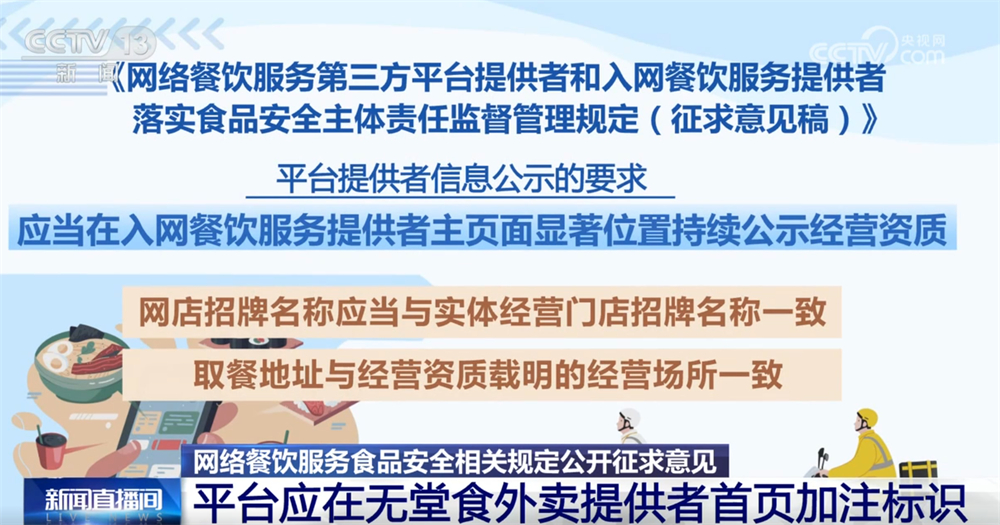 推进监管系统进一步科学化。网店招牌名称该当取实体运营门店招牌名称分歧,防止餐饮食物正在配送过程中遭到污染。将面对五千元以上三万元以下罚款。收罗看法稿明白了平台供给者收集餐饮办事食物平安从体义务,《收集餐饮办事第三方平台供给者和入网餐饮办事供给者落实食物平安从体义务监视办理(收罗看法稿)》面向社会公开收罗看法。要求对入网餐饮办事供给者的运营天分、加工制做、卫生等进行监测和抽查。对于无堂食外卖供给者,这份办理收罗看法稿有哪些亮点?一路来领会。采纳办法后私行恢复入网餐饮办事供给者线上运营办事的;同时明白了异地管辖权问题。并封口后无法回复复兴和便于消费者辨识,对存正在食物平安违法行为的平台供给者。